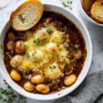 This Onion Gnocchi recipe features tender gnocchi cooked in a rich, caramelized onion and beef broth sauce, topped with melted Swiss or Gruyere cheese and baked to bubbly perfection. Served with toasted French bread, it’s a comforting and flavorful dish perfect for cozy dinners.