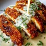 This Parmesan Crusted Chicken with Creamy Garlic Sauce is a deliciously crispy and tender chicken breast coated with a savory mix of Parmesan cheese and panko breadcrumbs, all pan-fried to golden perfection and served with a rich, garlicky cream sauce infused with Italian herbs. A perfect restaurant-quality meal made easily on the stovetop.
