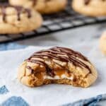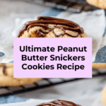 Keywords: peanut butter snickers cookies, peanut butter cookies, Snickers cookies, chocolate drizzle cookies, easy dessert cookies