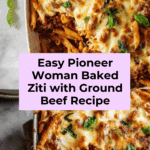 This Pioneer Woman Baked Ziti with Ground Beef is a comforting, hearty pasta dish perfect for family dinners. Loaded with flavorful ground beef, pancetta, and a blend of cheeses, it’s easy to prepare and always a crowd-pleaser.