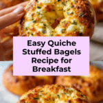 Quiche Stuffed Bagels offer a delightful twist on traditional quiche by filling hollowed-out bagels with a rich mixture of eggs, cream, cheese, bacon, and sautéed vegetables. Baked until golden and set, these handheld breakfast treats are perfect for a satisfying morning meal or brunch with family and friends.
