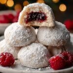 These Raspberry-Filled Almond Snowball Cookies are delicate, tender treats with a delightful burst of raspberry jam inside. Soft almond-flavored dough envelops a sweet filling, then is dusted with powdered sugar for a snowy finish. Perfect for sharing or enjoying with a cup of tea.