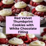 Keywords: Red Velvet Cookies, Thumbprint Cookies, White Chocolate Filling, Holiday Cookies, Dessert Cookies, Festive Treats