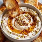 This ricotta dip with hot honey is an easy and elegant appetizer that balances creamy cheese with a sweet and spicy kick. Perfect for parties or a quick snack, it pairs wonderfully with baguette slices or crackers.