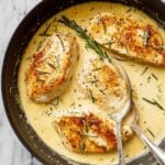 This Rosemary Chicken recipe features tender chicken cutlets cooked in a flavorful creamy rosemary and Dijon mustard sauce, perfect for a comforting and elegant meal.