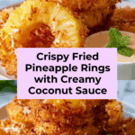 Fried Pineapple Rings with Creamy Coconut Dipping Sauce is a delicious tropical dessert featuring pineapple rings soaked in pineapple juice, coated with a crispy sweetened coconut crust, and fried to golden perfection. Paired with a smooth cream cheese and coconut milk dipping sauce, this recipe offers a perfect balance of sweet, tangy, and creamy flavors; ideal for summer gatherings or a tropical treat at home.