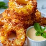 Keywords: Fried Pineapple Rings, Coconut Crust, Tropical Dessert, Creamy Coconut Dipping Sauce, Pineapple Recipe, Fried Fruit, Tropical Treat, Coconut Coating, Sweet Treat