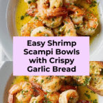 Shrimp Scampi Bowls with Garlic Bread is a flavorful, easy-to-make dinner featuring succulent sautéed shrimp in a buttery garlic-lemon sauce served alongside crispy, golden garlic bread. This recipe combines tender shrimp cooked with garlic, white wine, lemon juice, and fresh parsley, served over bowls with a side of toasted, herb-infused bread, making it a perfect comforting meal.