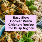 Slow Cooker Pesto Chicken is a simple and flavorful dish perfect for busy days. With tender chicken breast cooked slowly in sun-dried tomato pesto and fresh spinach, it offers a comforting meal that pairs beautifully with rice or pasta.