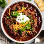 PrintSlow Cooker Shredded Beef Chili Recipe