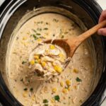 This Slow Cooker White Chicken Chili is a comforting and hearty dish featuring tender chicken, creamy cannellini beans, corn, and a blend of spices slow-cooked to perfection. Finished with cream cheese for a smooth texture and fresh lime and cilantro for brightness, it is an easy, flavorful meal ideal for cozy dinners.