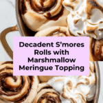 Store any leftover s’mores rolls in an airtight container at room temperature for up to 2 days. They can also be refrigerated for up to 5 days—warm gently before serving. The marshmallow meringue topping is best added fresh, but you can keep baked rolls without topping refrigerated and add marshmallow topping when ready to serve. Reheat rolls in a warm oven or microwave briefly for softness.