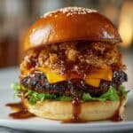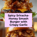 The Sriracha-Honey Glazed Smash Burger with Crispy Garlic Crunch is a bold and flavorful twist on a classic favorite. This burger combines a spicy-sweet glaze, melty cheddar, and crunchy garlic chips for a satisfying mix of textures and tastes. Perfect for those seeking an indulgent yet easy-to-make meal.