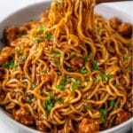 This Sticky Garlic Chicken Noodles recipe features tender chicken pieces coated in a sweet and savory garlic-ginger sauce, tossed together with perfectly cooked noodles and garnished with green onions and sesame seeds. It’s a quick and flavorful dish perfect for a satisfying dinner.