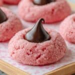 Keywords: Strawberry Kiss Cookies, strawberry cake mix cookies, Hershey’s Kiss cookies, easy strawberry cookies, soft strawberry cookies, cream cheese cookies, holiday cookies