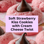 Delight in these Strawberry Kiss Cookies made from a strawberry cake mix, blended with butter, egg, and cream cheese for a tender, thick cookie. Each cookie is topped with a classic Hershey’s Kiss, creating a perfect combination of fruity sweetness and rich chocolate. These cookies are chilled before baking to prevent spreading, resulting in soft-centered, beautifully cracked treats perfect for any occasion.