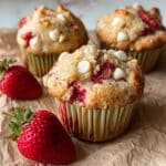 Delightfully tender and flavorful Strawberry White Chocolate Muffins featuring a buttery streusel topping. These moist muffins combine fresh or frozen strawberries with sweet white chocolate chips, offering a perfect balance of fruity freshness and creamy sweetness. A two-step baking process creates a golden, crunchy streusel exterior while keeping the interior soft and tender.