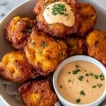 Store leftover hushpuppies in an airtight container in the refrigerator for up to 3 days. Reheat them in an oven or toaster oven at 350°F (175°C) for 5–7 minutes to retain their crispiness. The cinnamon butter dip is best served fresh but can be chilled and stirred before serving.