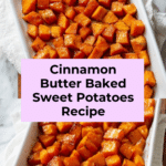 Keywords: sweet potato recipe, baked sweet potatoes, cinnamon butter sweet potatoes, maple syrup sweet potatoes, easy side dish, fall recipes