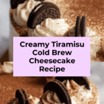 This Tiramisu Cold Brew Coffee Cheesecake is a decadent no-bake dessert that combines the rich flavors of cold brew coffee and creamy cheesecake layered over a buttery graham cracker crust and coffee-soaked ladyfingers. Topped with a dusting of cocoa powder, it offers a delightful twist on traditional tiramisu, perfect for coffee and cheesecake lovers alike.